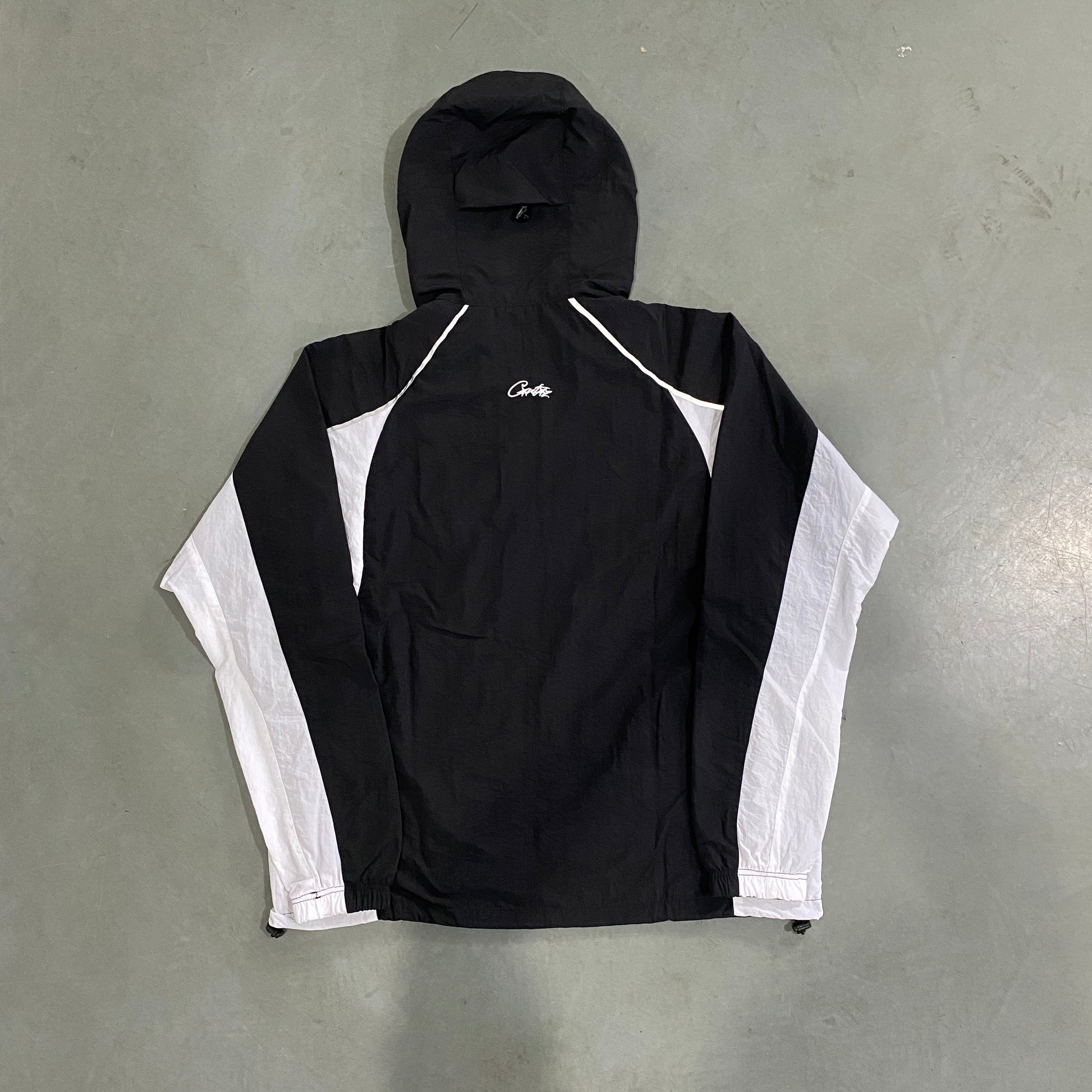 • Capucha ajustable y cierre frontal completo